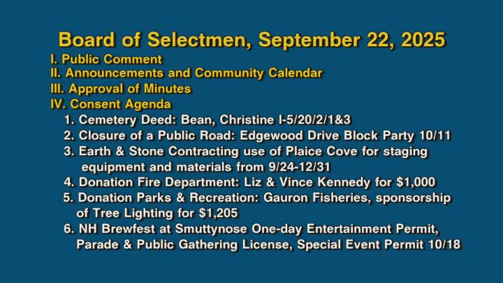 Board of Selectmen, September 22, 2025