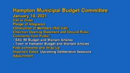 - Budget Committee Complete Public Hearing, January 16, 2020